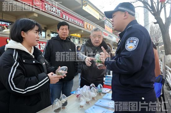 2023年11月30日,乌鲁木齐市公安局沙依巴克区分局禁毒大队民警为居民讲解毒品的辨识方法。