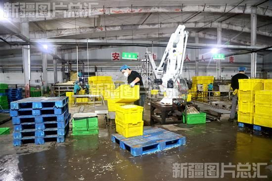 2023年12月1日,位于新疆生产建设兵团第六师共青团农场的新疆天达生物科技有限公司生产车间内,工人在加工黄豆芽。