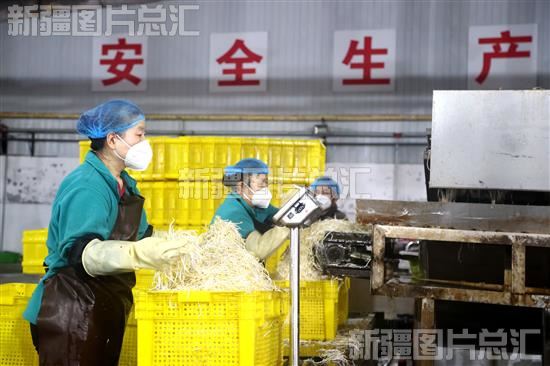 2023年12月1日,位于新疆生产建设兵团第六师共青团农场的新疆天达生物科技有限公司生产车间内,工人在加工黄豆芽。