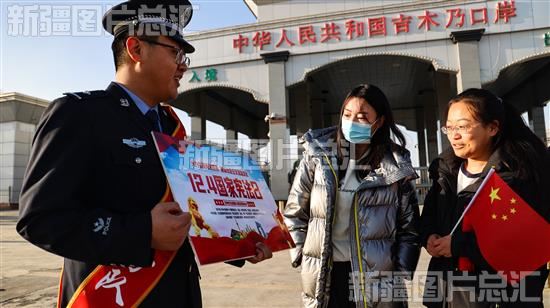 在第十个国家宪法日来临之际,新疆出入境边防检查总站阿勒泰边境管理支队吉木乃口岸边境派出所民警通过发放宣传资料、现场宣讲等方式,引导当地群众和游客学习宪法、遵守宪法。