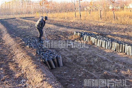 2023年11月30日,新源县林业和草原局工作人员对已经播种的营养钵进行培土,以便后期管理。