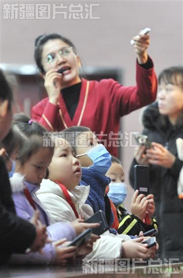 2023年12月3日,小观众在巴音郭楞蒙古自治州博物馆听讲解员讲解。