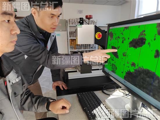 2023年12月5日,新疆研科节能科技有限公司工作人员通过电子显微镜查看样本。