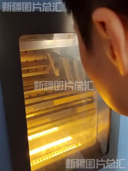 2023年12月5日,新疆研科节能科技有限公司工作人员查看设备中的测试样本。