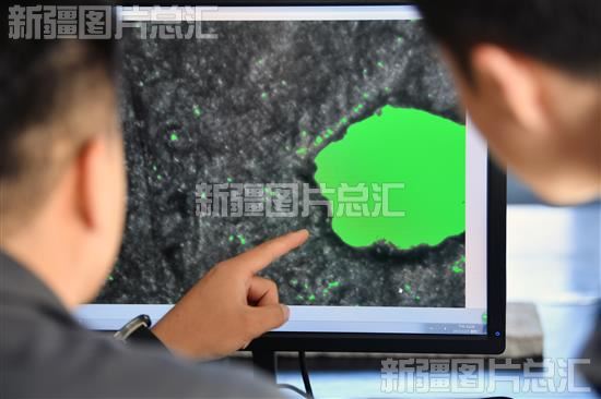 2023年12月5日,新疆研科节能科技有限公司工作人员通过电子显微镜查看样本。