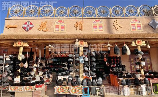 进入位于在库车市热斯坦街道的“花帽巷”,五颜六色的花帽挂满小巷两侧,色彩斑斓的门窗,用艾德莱斯制作的灯笼、布帘,旧时光小卖部的“老”汽水、CD机、使人仿佛穿梭在时光隧道当中。热斯坦街道位于库车老城区,是库车市现存为数不多还保存着民族特色的老居民区,近年来,随着库车市大力开发特色龟兹品牌,倾力打造文旅融合产业发展示范区,各老城区结合自身实际进行适度改造,使原生态的文化气息与新生代的时代印记相融合。如今的“花帽巷” 已经成为库车新晋网红打卡地。
