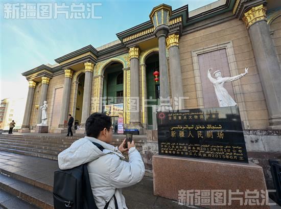 2023年12月5日,市民在拍摄全国重点文物保护单位“新疆人民剧场”外景。