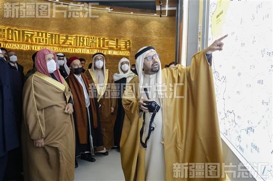 2023年1月8日,“世界知名伊斯兰宗教人士和学者代表团”参观新疆的反恐和去极端化斗争主题展。
