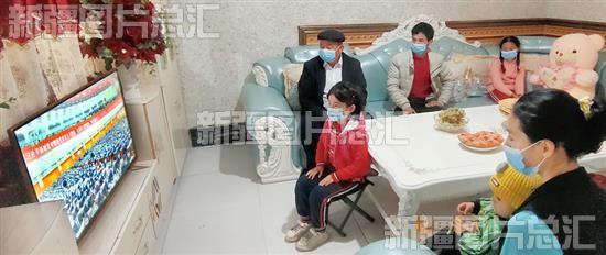 2022年10月16日,喀什地区巴楚县色力布亚镇克亚克力克村村民图尔荪.沙衣木一家人一起收看中国共产党第二十次全国代表大会开幕会盛况。坎麦地拉·多力空摄
