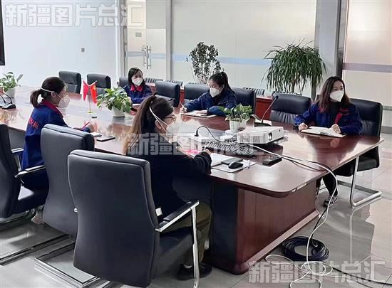 2022年10月25日,位于乌苏市的新疆钵施然智能农机股份有限公司员工通过视频学习党的二十大精神。
