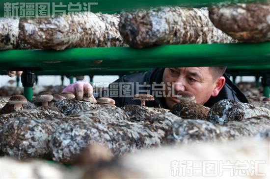 2022年3月19日,阿勒泰市红敦镇多拉特村村民在大棚里采收香菇。近年来,阿勒泰市大力发展特色高效农业,通过“公司+基地+农户”的模式大力发展香菇种植,带动农牧民增收。阿尔达克·拜斯汗 摄