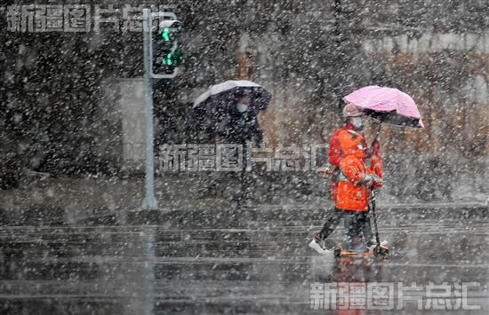 2022年3月30日,市民在乌鲁木齐市河南路上冒雪出行。当日,乌鲁木齐市普降大雪,让本已回升的气温有所回落。邹懿摄