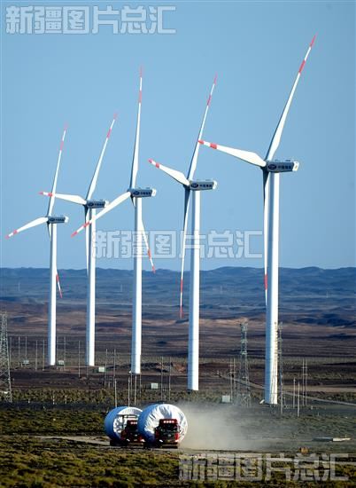 2022年5月24日,施工人员在新疆生产建设兵团第六师北塔山牧场运送风力发电设备。 今年,兵团第六师计划在偏远牧场、连队新建40万千瓦风力发电机组。王志清摄