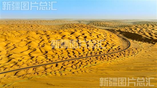 尉犁至且末沙漠公路(2022年6月30日无人机摄)。当日,该公路正式通车,标志着第三条穿越塔克拉玛干沙漠的公路正式通车运营。韩亮摄