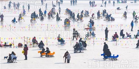 2023年1月2日,游客在库尔勒市鸿雁冰雪场体验冰上娱乐项目。近年来,库尔勒市新建和升级改造冰雪运动场地,广泛开展各类冰雪主题赛事活动等,助力当地全域旅游。韩峻摄