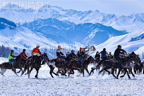 2023年2月15日,大山深处的刁羊比赛。当日,特克斯县阔克铁热克柯尔克孜族乡举办刁羊比赛,13支代表队参赛。该乡现有近百名农牧民常年参与刁羊比赛,成为活跃当地各族群众文化生活的骨干。张庆华摄