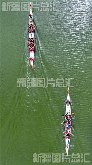 2023年6月22日,博湖县在博斯腾湖大河口景区举办龙舟赛,来自当地8支代表队百余名龙舟健儿参赛。伴随着铿锵激越的鼓声,选手们奋勇争先。年磊摄