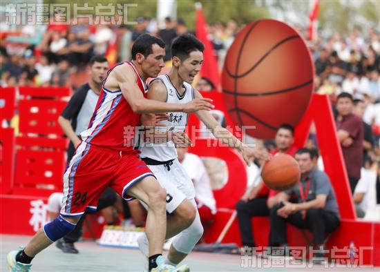 2023年7月26日,乌鲁木齐市代表队与喀什地区代表队争夺总决赛冠军。 当日,为期4天的自治区“和美杯”乡村篮球总决赛(新疆“村BA”)在洛浦县闭幕。买买提艾力·艾尼瓦尔摄