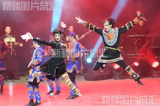 2023年8月3日,演员在表演歌舞。当日,格鲁吉亚国家舞蹈团歌舞晚会《格鲁吉亚宝藏》在乌鲁木齐京剧院上演,为观众带来一场视觉盛宴。韩亮摄