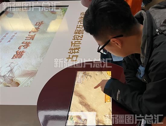 2023年12月6日,游客在阿克苏博物馆通过电子屏体验挖掘古钱币。