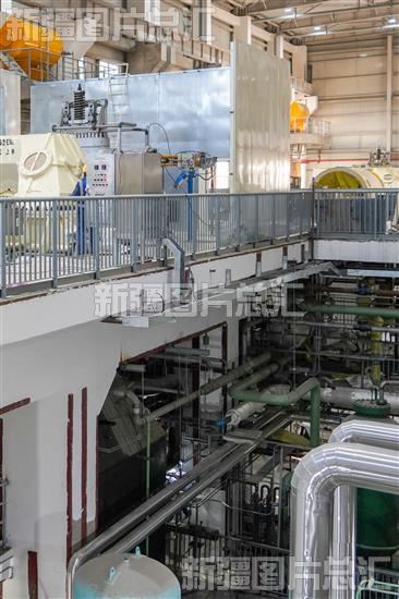 2023年12月5日,伊吾工业园区,新疆新力宣东发电有限公司厂房内,4×50兆瓦尾气综合利用发电项目正在进行生产调试。
