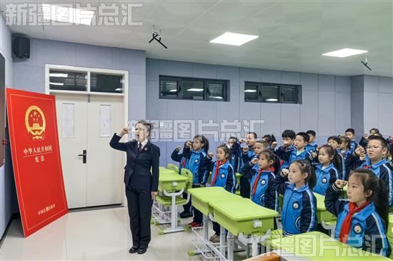 2023年12月4日,乌鲁木齐市水磨沟区人民检察院米热古丽·米吉提检察官走进乌鲁木齐市第五十九小学会展校区与孩子们一起向宪法宣誓。