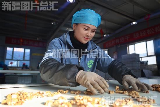 关键字:阿克苏地区 乌什县 依麻木镇 林果业 林果种植 专业合作社 生产车间 工人 核桃 筛选 包装 装运 直播 电子商务 公共服务中心