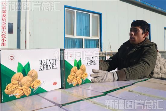 关键字:阿克苏地区 乌什县 依麻木镇 林果业 林果种植 专业合作社 生产车间 工人 核桃 筛选 包装 装运 直播 电子商务 公共服务中心