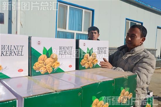 关键字:阿克苏地区 乌什县 依麻木镇 林果业 林果种植 专业合作社 生产车间 工人 核桃 筛选 包装 装运 直播 电子商务 公共服务中心