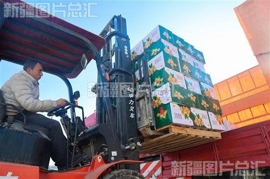 2023年12月7日,合作社社员驾驶叉车装运核桃。