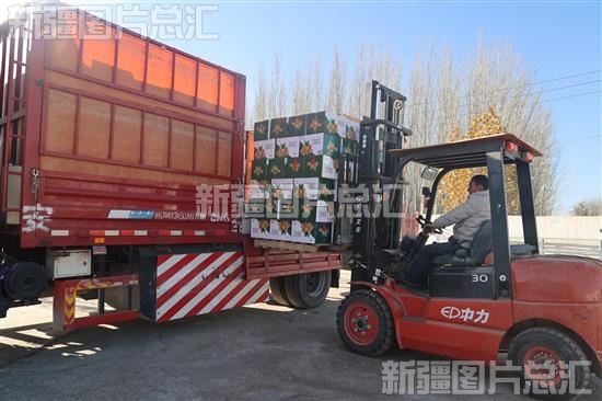 2023年12月7日,合作社社员驾驶叉车装运核桃。
