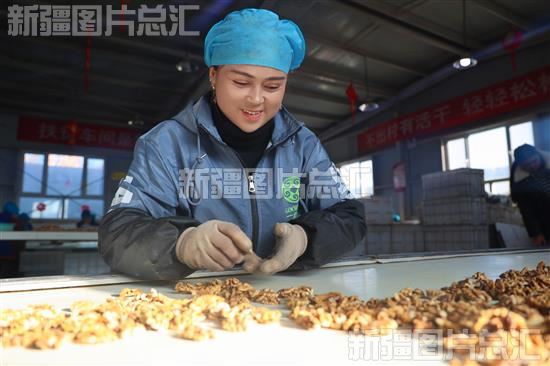 关键字:阿克苏地区 乌什县 依麻木镇 林果业 林果种植 专业合作社 生产车间 工人 核桃 筛选 包装 装运 直播 电子商务 公共服务中心