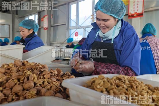 关键字:阿克苏地区 乌什县 依麻木镇 林果业 林果种植 专业合作社 生产车间 工人 核桃 筛选 包装 装运 直播 电子商务 公共服务中心
