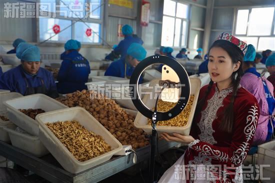 关键字:阿克苏地区 乌什县 依麻木镇 林果业 林果种植 专业合作社 生产车间 工人 核桃 筛选 包装 装运 直播 电子商务 公共服务中心