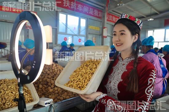 关键字:阿克苏地区 乌什县 依麻木镇 林果业 林果种植 专业合作社 生产车间 工人 核桃 筛选 包装 装运 直播 电子商务 公共服务中心