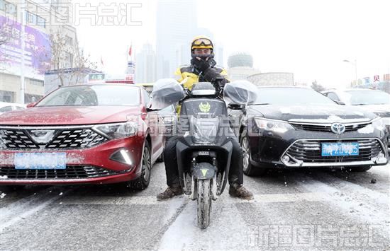2023年12月12日,外卖员在乌鲁木齐市西大桥附近骑行配送外卖。
