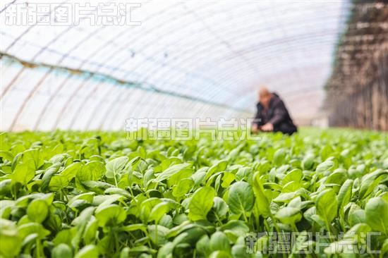 2023年12月11日,种植户在新源县别斯托别乡设施农业基地蔬菜种植大棚里查看蔬菜长势。