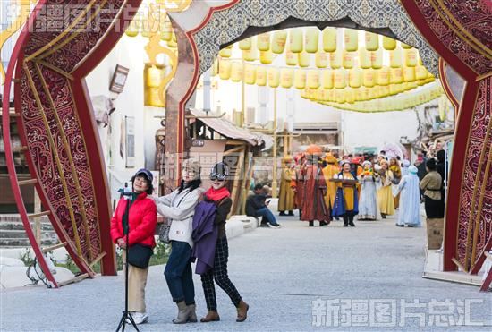 2023年12月8日,游客在约特干故城景区感受穿越千年,重现丝路西域的繁华盛景。