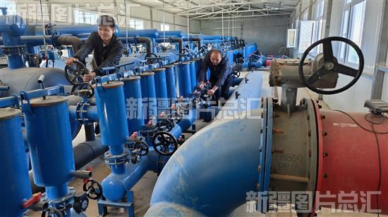2023年11月1日,工作人员在察布查尔锡伯自治县加尕斯台镇巴合提村的滴灌控制机房里操作放水圆盘,准备浇灌冬小麦。