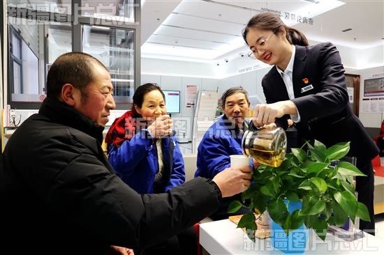 2023年12月13日,中国银行昌吉市中山路支行中银公益驿站,工作人员为歇脚取暖的环卫工人和快递员送上热茶。