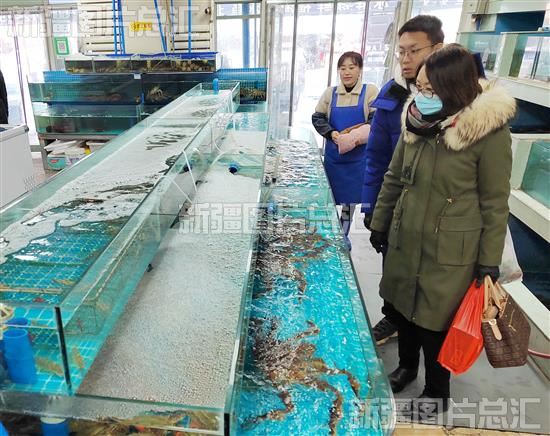 2023年12月16日,市民在位于乌鲁木齐高新区(新市区)的新联农副产品综合市场选购水产品,该市场内各类蔬菜、水果、肉类、粮油等商品供应充足,价格稳定。