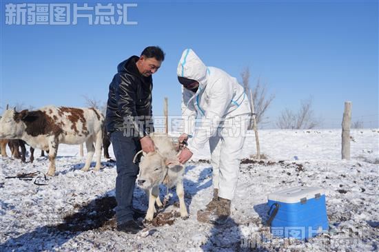 2023年12月13日,畜牧防疫员给牲畜注射疫苗。