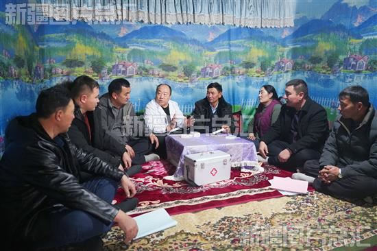 2023年12月13日,医务人员深入牧民冬季定居点为牧民宣讲健康知识,赠送药品。