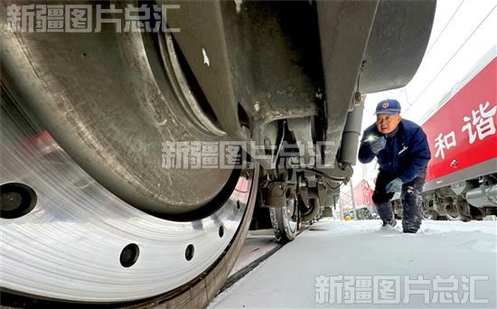 2023年12月13日,乌鲁木齐机务段客车整备车间工作人员对电力机车进行检查。石榴云/新疆日报记者 韩亮摄