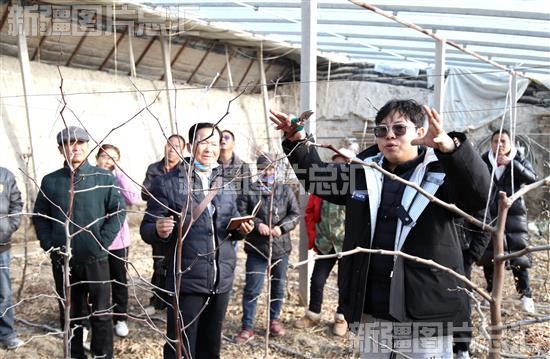 2023年12月8日,陕西省渭南市大荔县阿毅农学院技术人员在新疆生产建设兵团第二师22团设施农业大棚里给种植户讲解冬枣树管理方法。