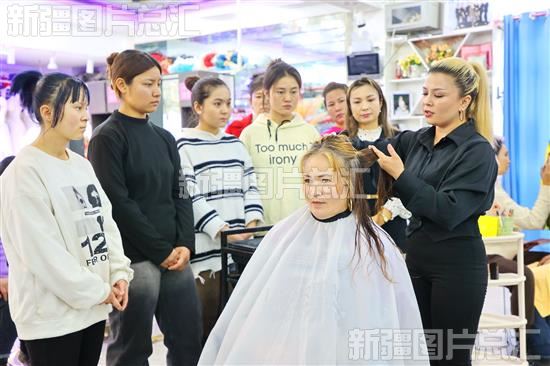 ??2023年12月11日,?库车市墩阔坦镇繁荣村村民参加美容美发培训。