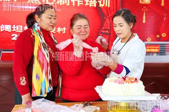 ?2023年12月11日,?库车市墩阔坦镇繁荣村村民参加面点烘焙培训。