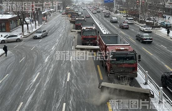 2023年12月12日,乌鲁木齐市依巴克区环卫清运队组织清雪车辆在扬子江路清理积雪。