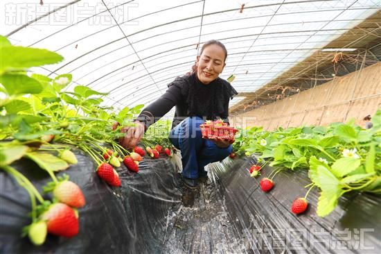 2023年12月14日,库车市比西巴格乡其乃巴格村村民在采摘草莓。