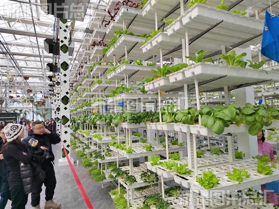 2023年12月19日,“四季看新疆”之“追着雪花看新疆”主题采访活动全媒体报道团队在位于昌吉国家农业高新技术产业示范区新疆农业博览园的未来农业科技馆内的垂直农业展示中心参观。
